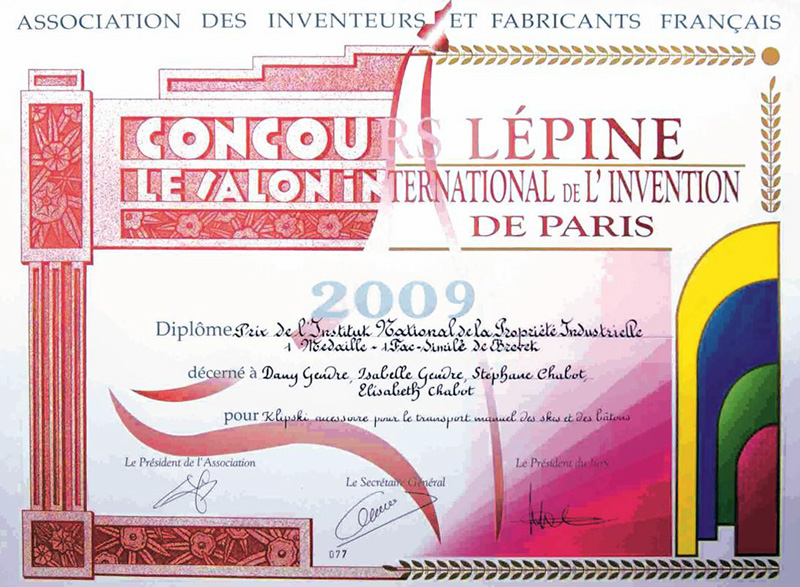 Le KLIPSKi à remporté 2 médailles au concours Lépine. Celle de l’INPI (L’Institut national de la propriété industrielle) et la médaille d’argent de la médecine du sport.